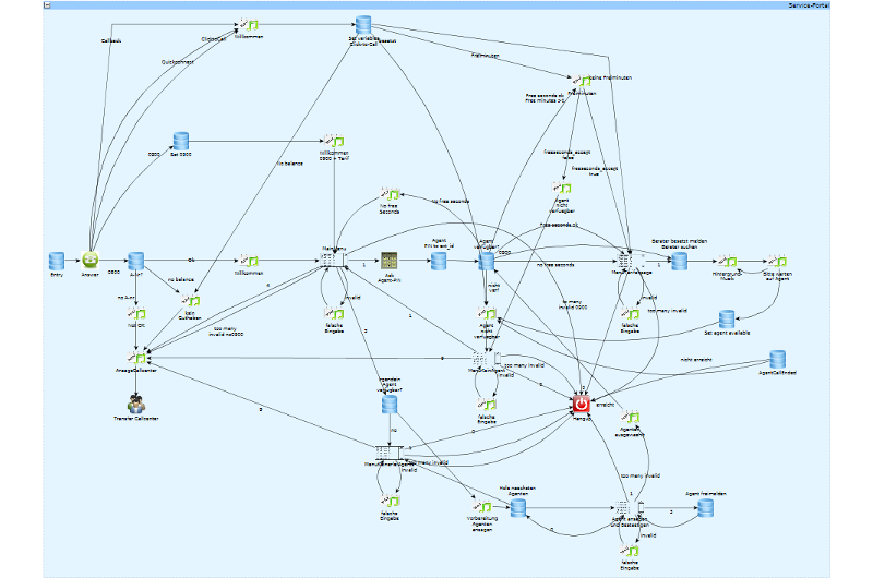 IVR-Systeme sind unsere Spezialität. Telefonie-Workflows werden grafisch gezeichnet und können sehr schnell am PC getestet werden. Die Dokumentation erfolgt bereits beim Entwurf des IVRs! Fast jede nur erdenkliche externe Datenquelle kann eingebunden werden. Spracherkennung/Worterkennung runden das System ab.